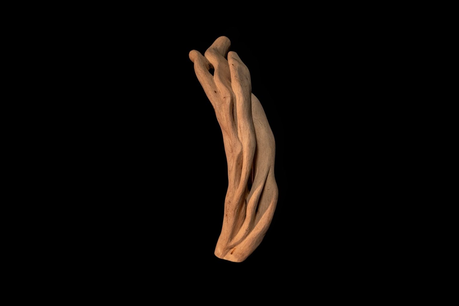 Com linhas que se entrelaçam como corpos em comunhão, esta escultura vertical sugere uma dança ancestral. Francelino Mesquita transforma a raiz em figura, o vegetal em gesto. A organicidade das formas remete ao corpo humano, ao abraço, ao enraizamento e à súplica. Essa obra toca o coração da Pupti: a sensibilidade bruta que carrega história, vínculo e elegância silvestre.